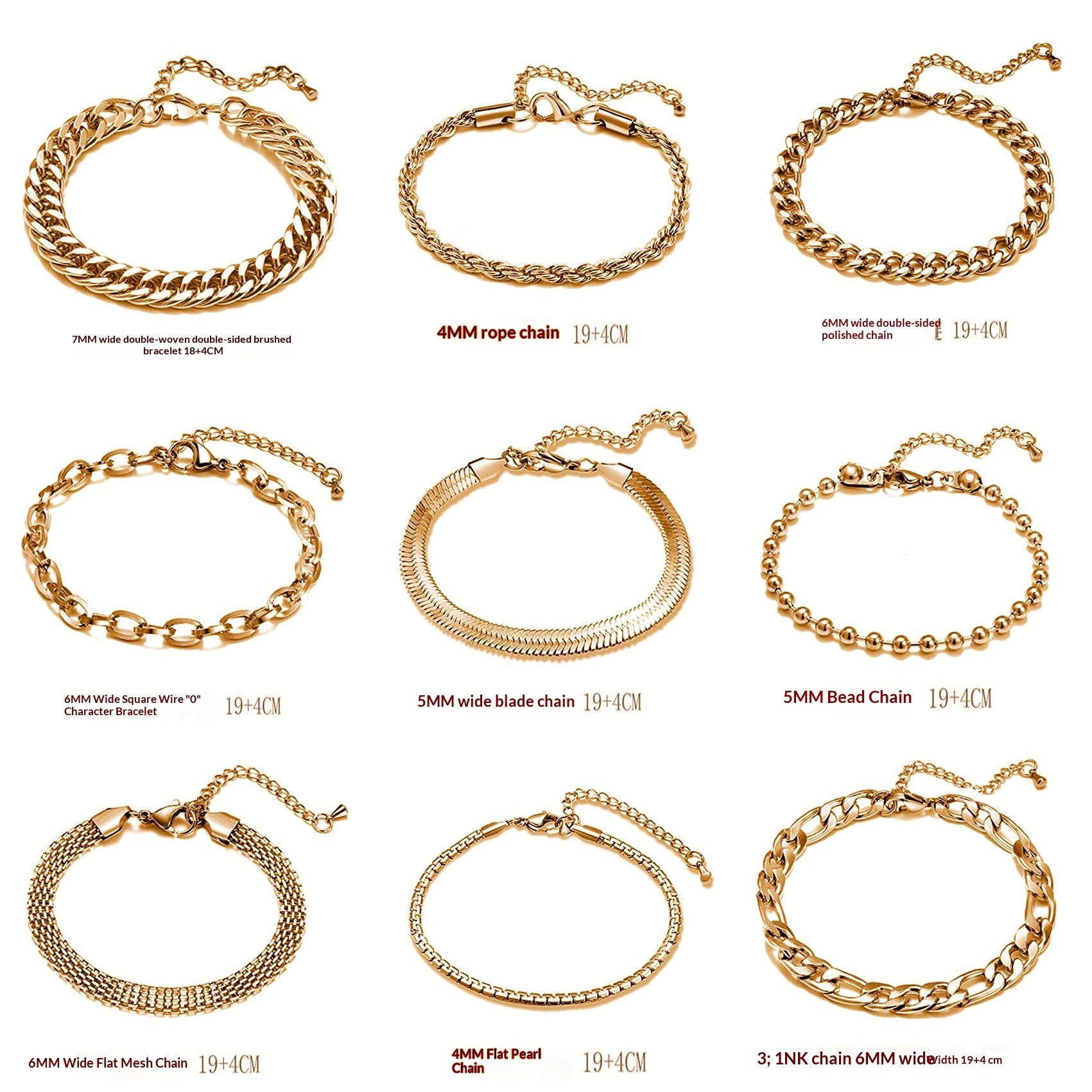Product information: Processing Technology: Electroplating Colors: Gold, Steel Target Audience: Unisex Style: Unisex Material: Titanium Steel Purity: C626519-5 Double-Braided Double-Polished...