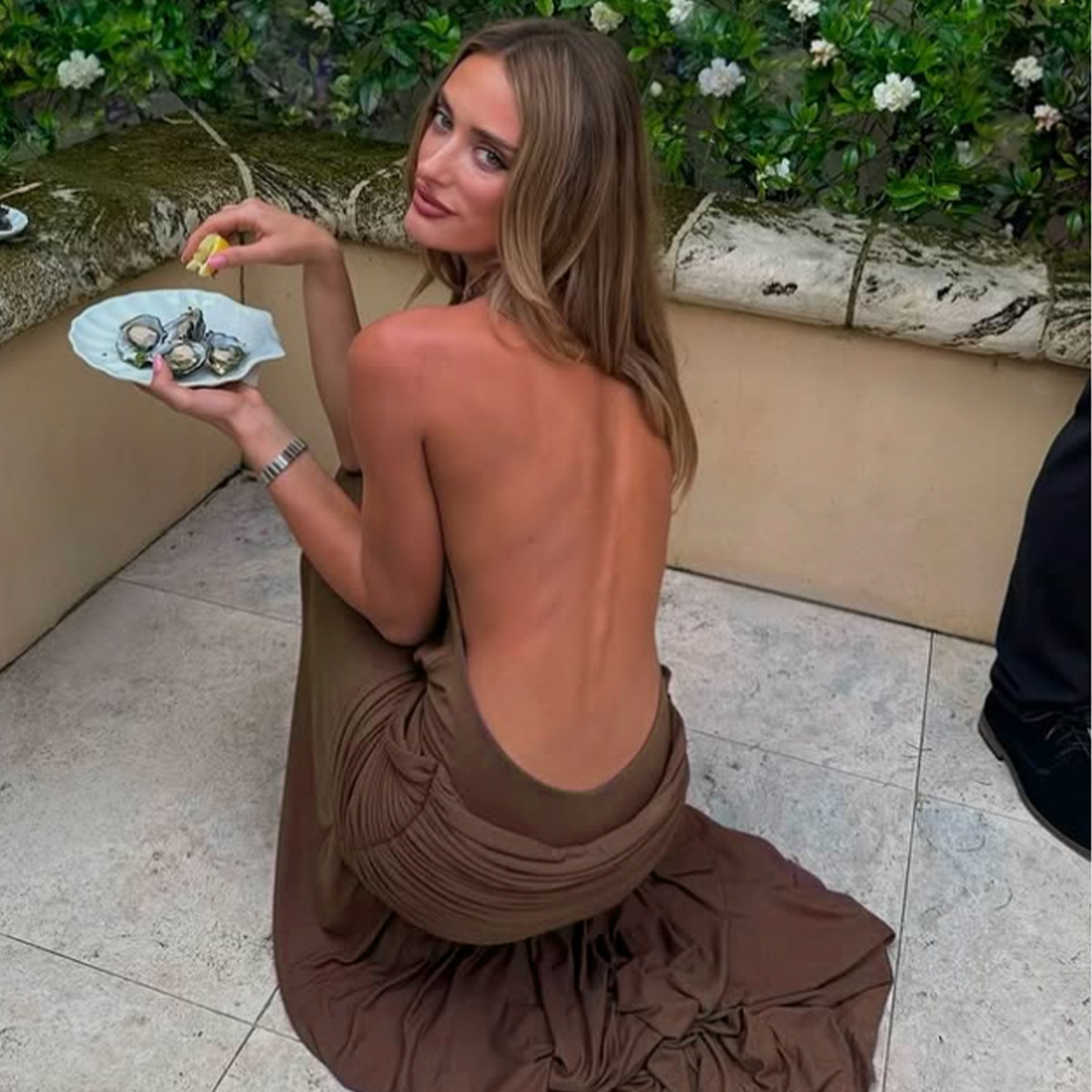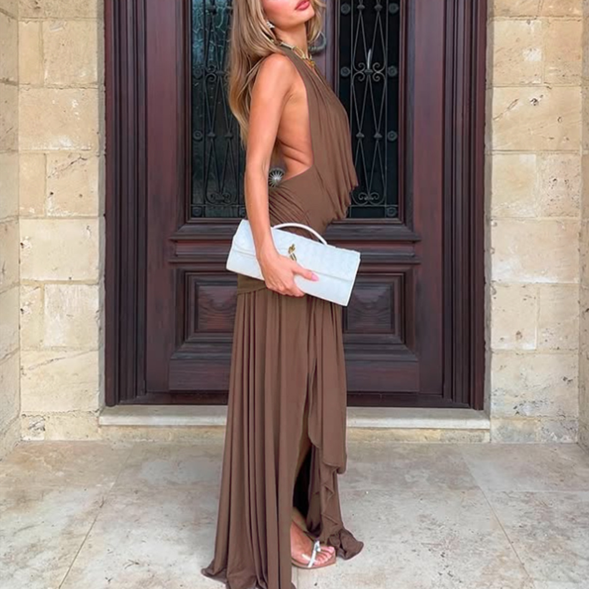 Womens Backless Patchwork Split Dress