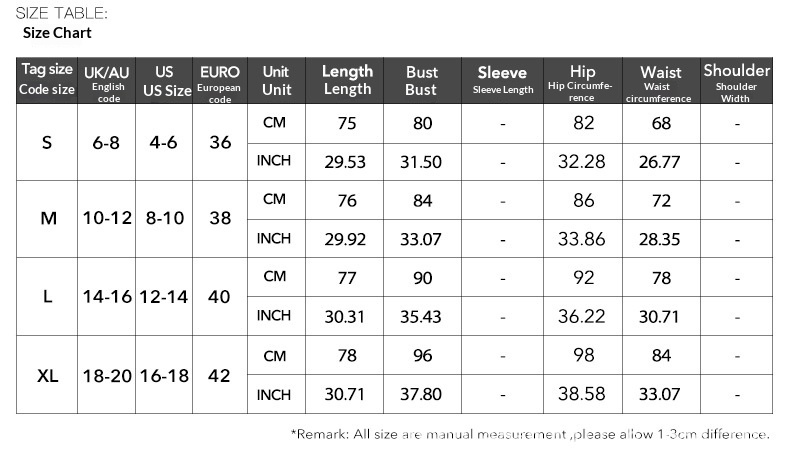 Note: 1. Asian sizes are 1 to 2 sizes smaller than European and American people. Choose the larger size if your size between two sizes. Please allow 2-3cm differences due to manual measurement. 2. Please check the size chart carefully before you buy the item, if you don't know how to choose size, please contact our customer service. 3.As you know, the different computers display colors differently, the color of the actual item may vary slightly from the following images.